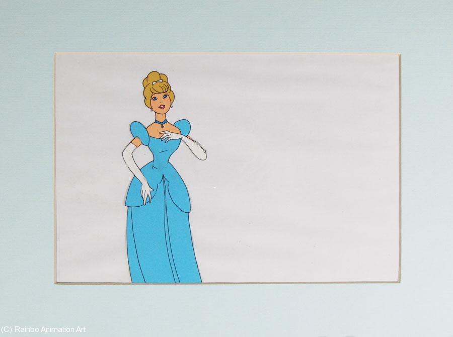 This is an original production cel from a non-Disney production of "Cinderella". It looks like it was made for television circa 1980, but I couldn't find any details. The cel measures 8x12" in a 12x16" mat. It would look wonderful on the wall of your princess' bedroom. |