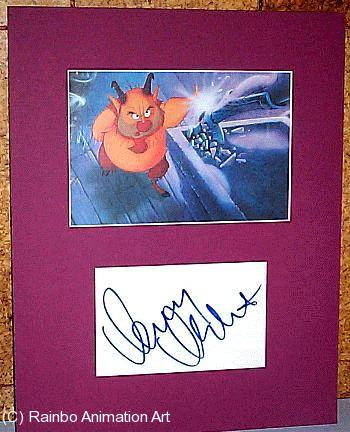 Danny DeVito was a great sidekick as the Herc's training coach Phil. He was sassy and smart, and even managed to carry a tune. Fans know Danny as the slimy, wise-cracking Louie DePalma in the 1970's sitcom "Taxi", and his most recent role in the FX series "It's Always Sunny in Philadelphia". The artwork measures 7x5" and is covered with a sheet of clear mylar for protection and to give it a nice gloss, over a 3x5" signature card in an 11x14" mat. |