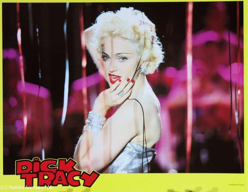 "Dick Tracy" was the pet project of star and director Warren Beatty. The 1989 production was famous for its strict use of comic book colors for most of the costumes and scenery. Disney pulled out all of the stops in promoting this musical, with midnight premieres around the country. OK, I could have chosen any of the nine 11x14" lobby cards for the picture. Would you rather see Warren Beatty in a bright yellow fedora or this picture of Madonna? 'Nuff said. |