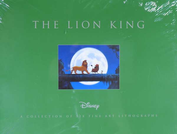This is a set of six lithographs sold in The Art of Disney in Disney's California Adventure when it opened in 2001. The lithos measure 11x14" and are printed on very high quality paper. They come in an attractive folder and feature all of your favorite characters: Simba, Timon, Pumbaa, and Scar. Simply gorgeous artwork from this great Disney movie. New and sealed. Contact us to receive a picture of the back cover illustrations of the lithos included in this set. Please forgive the reflections from the shrinkwrap.