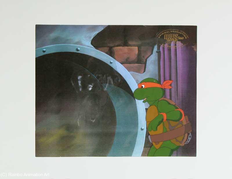 The Teenage Mutant Ninja Turtles Cels animation art images on this page are the copyright© property of Murakami Wolf Swenson Studios® and Rainbo Animation Art. They are intended only as illustrations of the products being offered for sale and may not be reproduced in any form for any other purpose without the permission of the copyright holders.